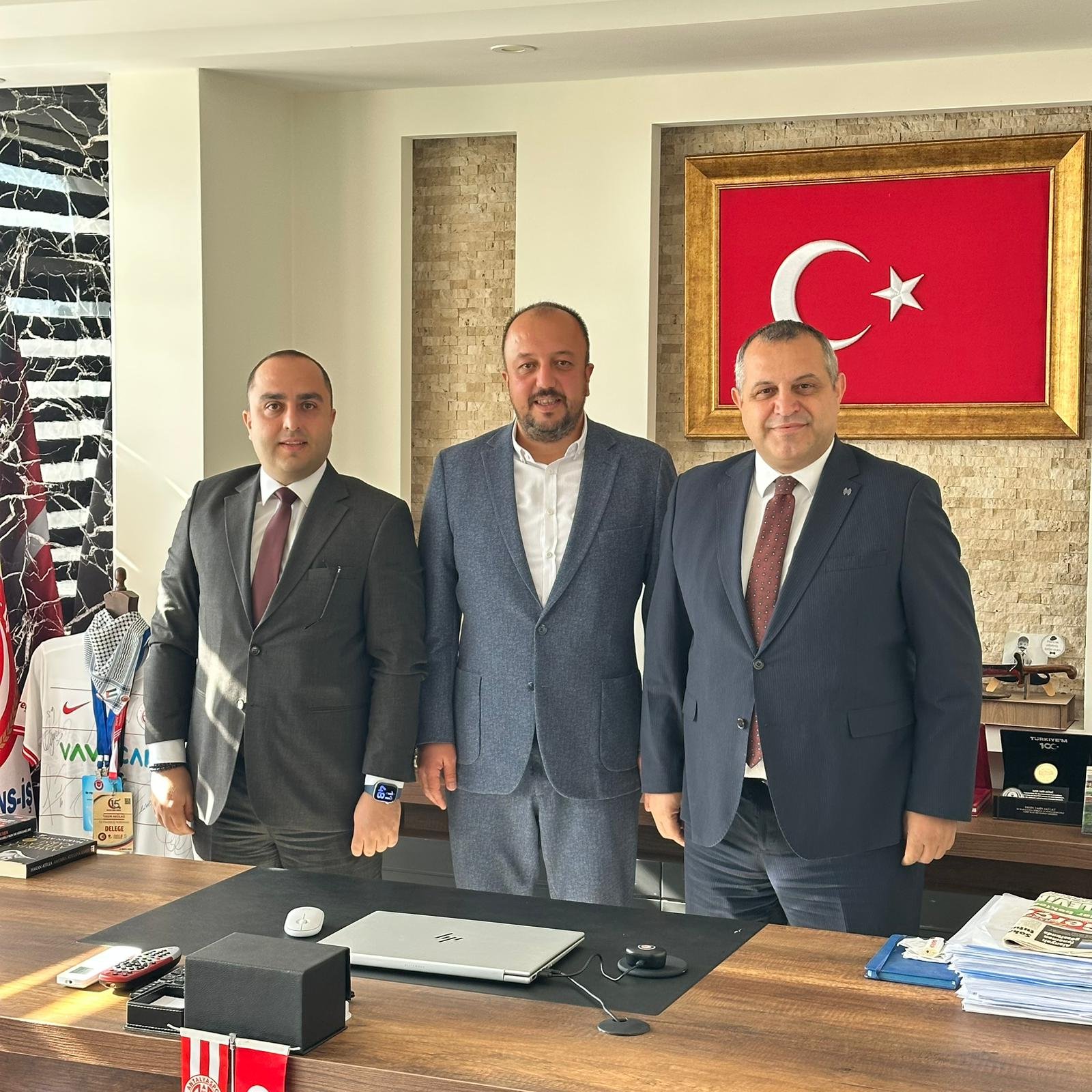 Sendikamız Antalya Bölge Başkanlığı 2. Olağan Genel Kurulunda yeniden başkanlığa seçilen Antalya Bölge Başkanı Yasin Akülkü'ye, Halkbank Denizli Bölge Koordinatörü İsmail Karabay ve KOBİ Pazarlama Bölüm Müdürü Engin Elçin,  "Hayırlı Olsun" ziyaretinde bulundu.