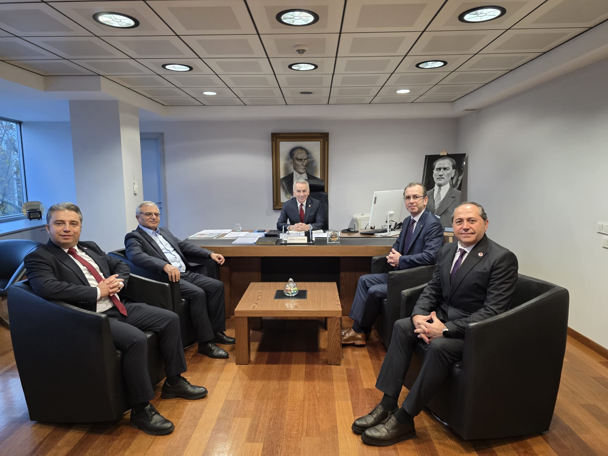 Sendikamız Genel Başkan Vekili Ali Kılıç, Genel Sekreter ve Mali İşler Genel Başkan Yardımcısı İrfan Kemal Karatosun, Sendikamız Genel Yönetim Kurulu Üyesi ve İstanbul Anadolu Bölge Başkanı Abdulcelil Güven, İstanbul Avrupa Bölge Başkanı Dr. Mümin Evren, Basisen Genel Başkanı Cüneyt Akarsu'ya 'Hayırlı Olsun' ziyaretinde bulundu.