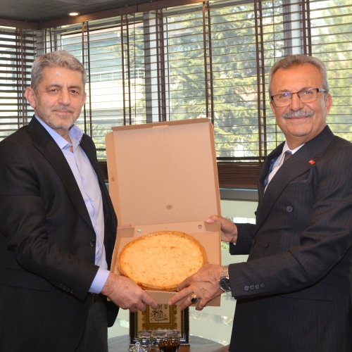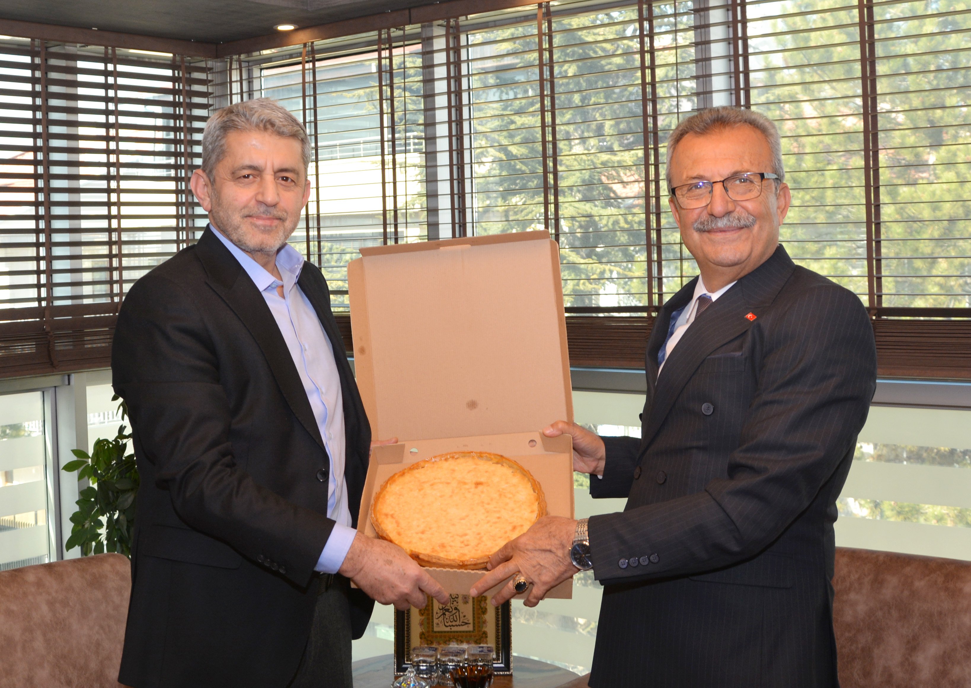 Belediye Başkanı Yeşildemir, Genel Başkanımız Eroğlu'na, yöreye özgü yoğurtlu kömbe hediye etti.