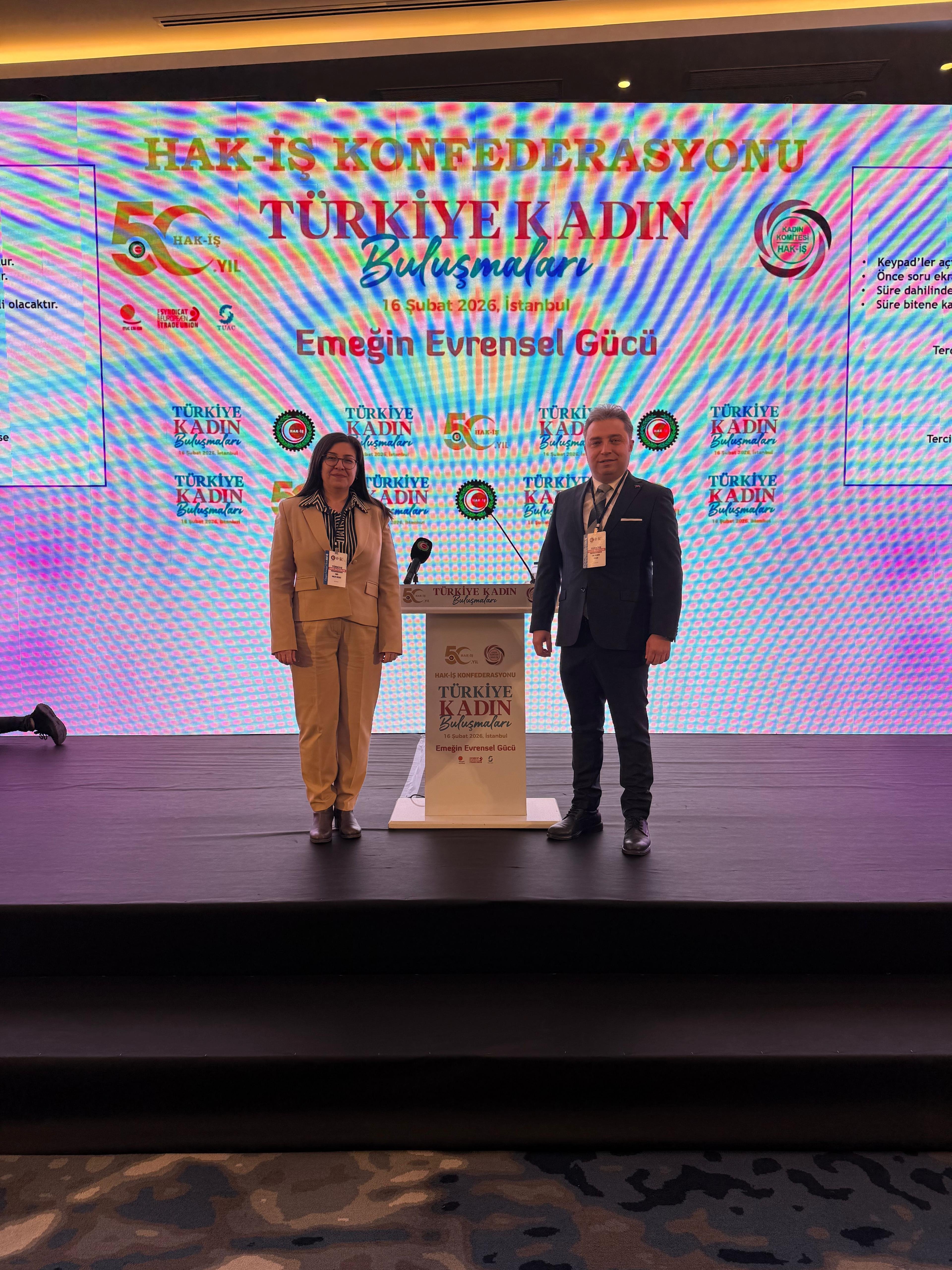 HAK-İŞ Konfederasyonu 50. Yıl etkinliklerimiz kapsamında gerçekleştirilen “Türkiye Kadın Buluşmaları'nın altıncısı “Kayıtlı, Güvenli ve Güvenceli Şehirler” temasıyla İstanbul Avrupa'da, Sendikamız Genel Yönetim Kurulu Üyesi ve İstanbul Anadolu Bölge Başkanı Dr. Mümin Evren ve Sendikamız İstanbul Avrupa Bölge Başkanlığı Yönetim Kurulu Üyesi İnci Bulut Kesici'nin katılımıyla gerçekleşti.