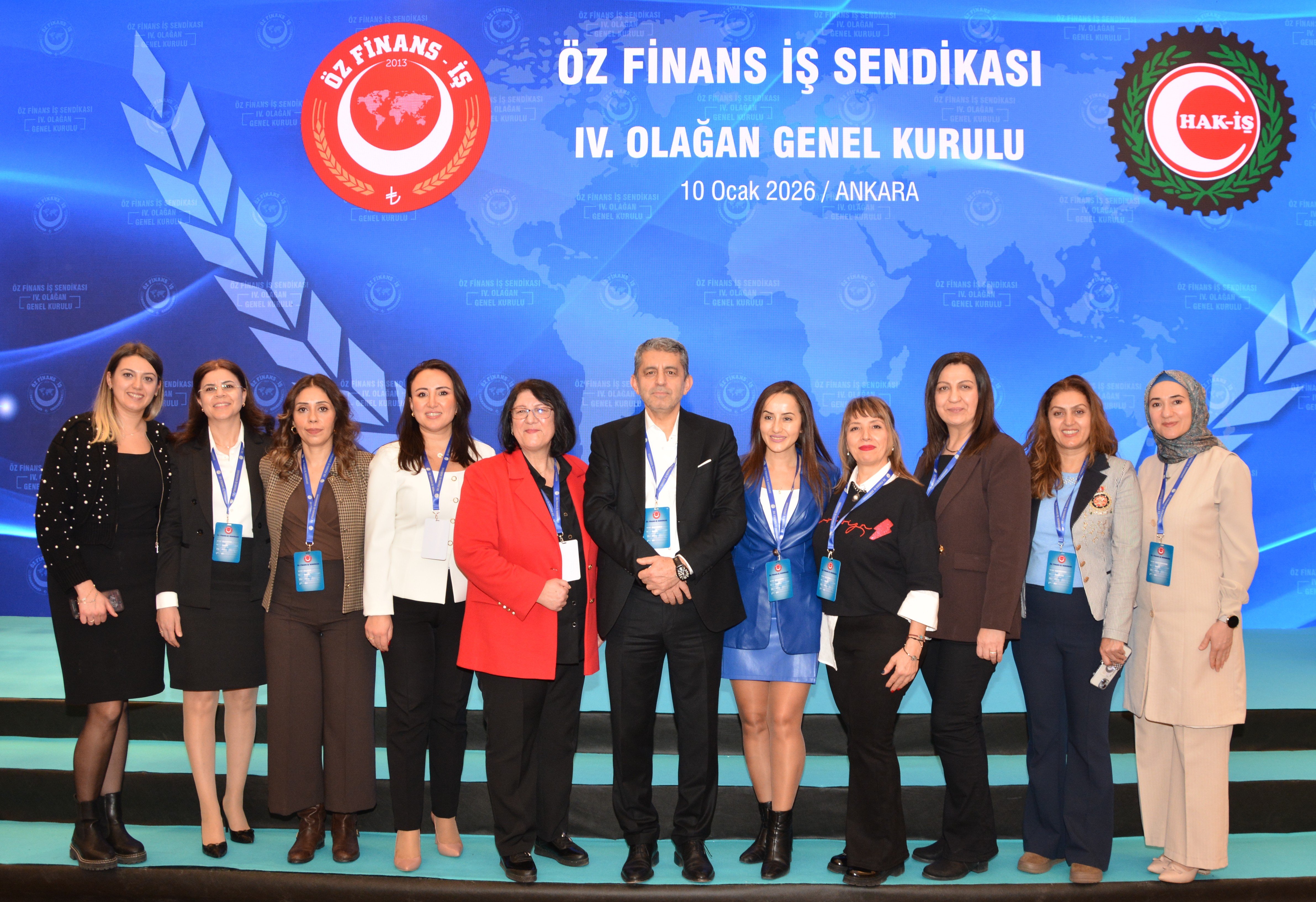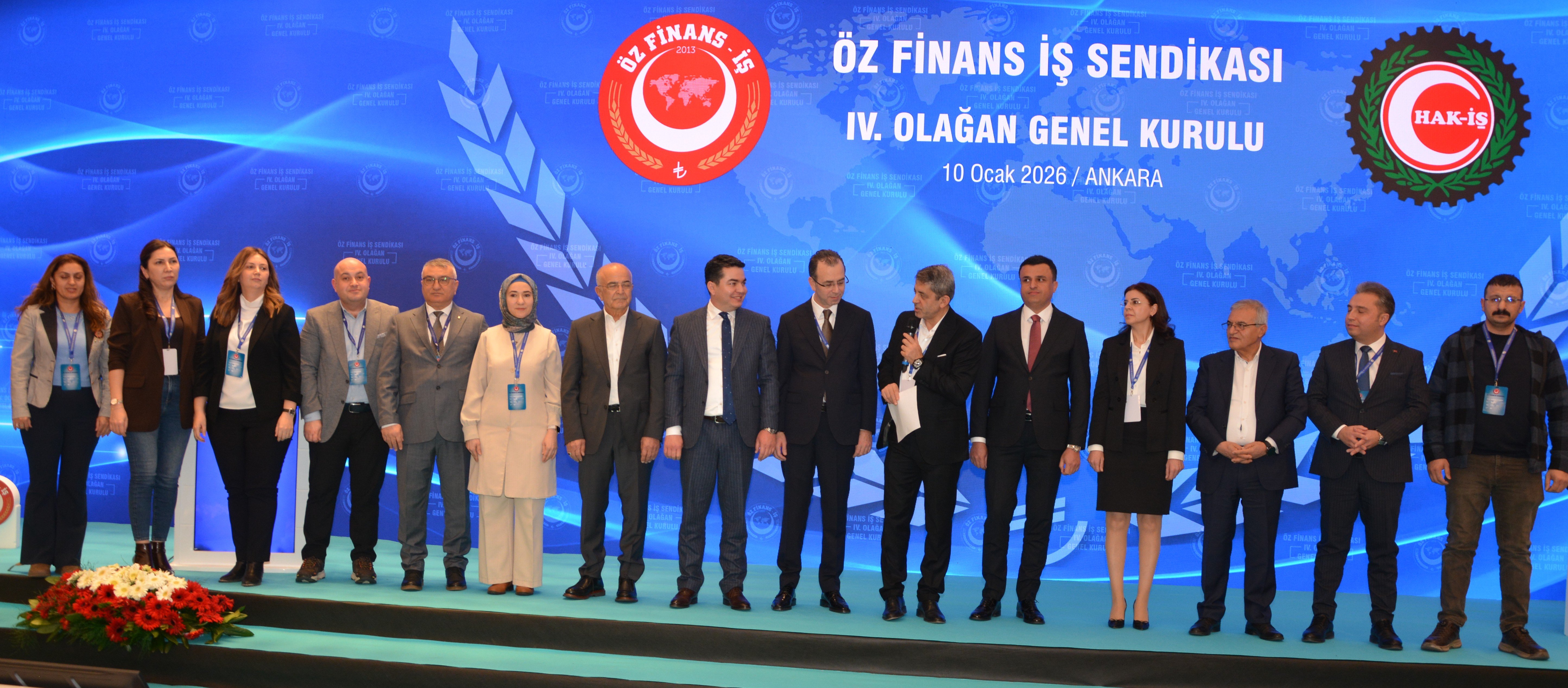 HAK-İŞ’in ilkeleriyle donandık ve yola çıktık" diyen Genel Başkanımız Ahmet Eroğlu, sendikalaşmaya sıfırdan başladıklarını belirterek, "HAK-İŞ'in ilkeleriyle donandık ve yola çıktık. Bunun üzerinden 13 yıl geçti. Henüz bir genel merkezimiz, bir aracımız, paramız ve üyemiz yoktu. 153 arkadaşımızın kendi imkanlarıyla sıfır sermaye olarak bu işe başladık. Bu 153 arkadaşımızla tek tek gezdik. 1 buçuk yıl içerisinde bin 800’e yakın şube ve bölge ziyaret yaptık. Arkadaşlarımıza sendikamızı ve sendikacılığı anlattık. 1 Ocak 2015 tarihinde yürürlüğe giren ilk toplu sözleşmemizi imzaladık. Şu anda 5’inci dönem toplu iş sözleşmemiz yürürlükte. Şimdi genel merkezimiz, araçlarımız ve ofislerimiz var. 60’a yakın arkadaşımız bu sendikanın genel merkezinde ve şubelerinde görev alıyor. Sendikanın imkanlarıyla hayatlarını idare ettiriyorlar. 420 il temsilcisi, her ilde bir baş temsilcisi olmak üzere il temsilcilerimiz var. Genel merkez kadın ve engelli komitelerimiz var. Bu komitelerimizin her biri 80 ilimizdedir."