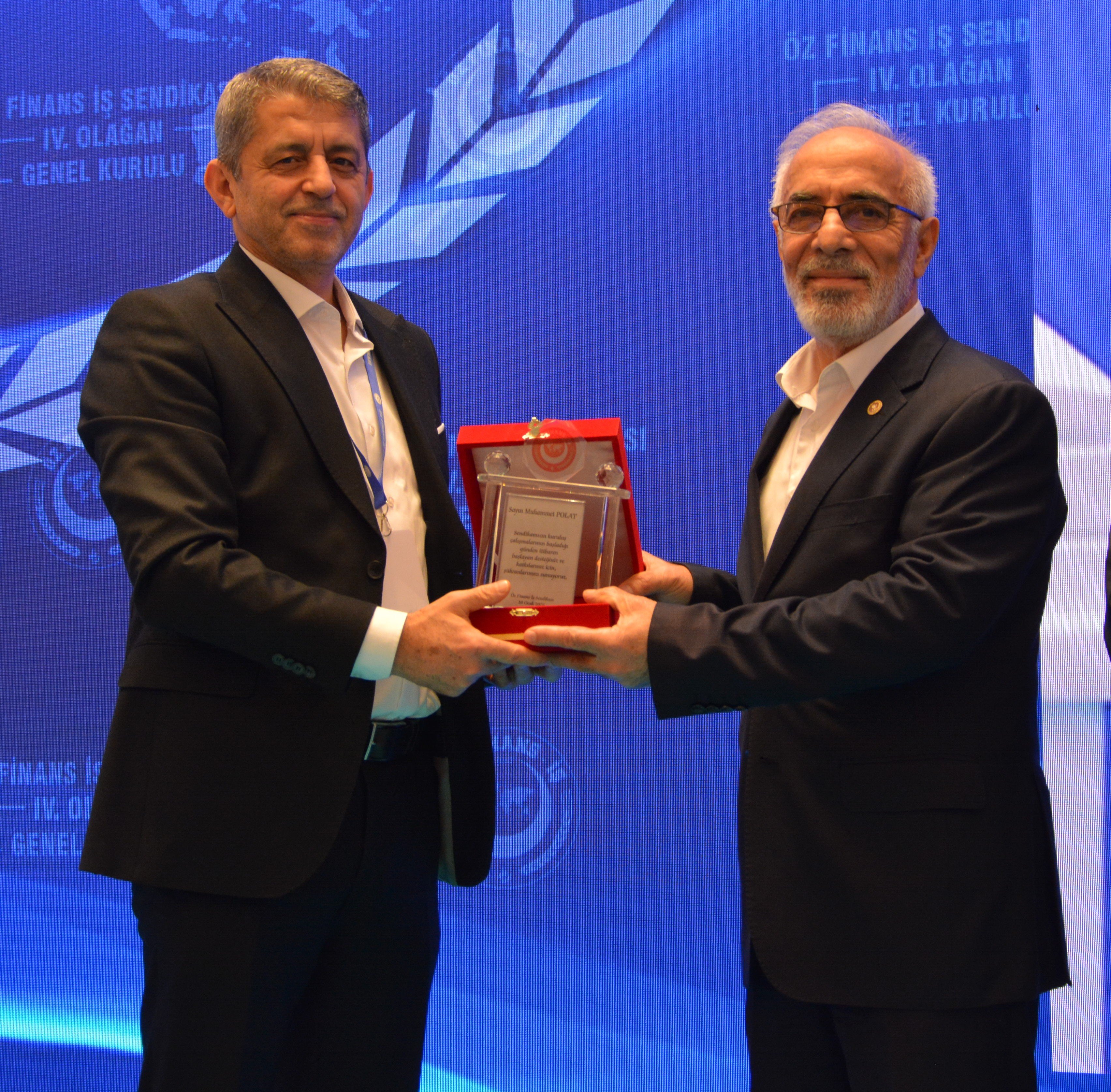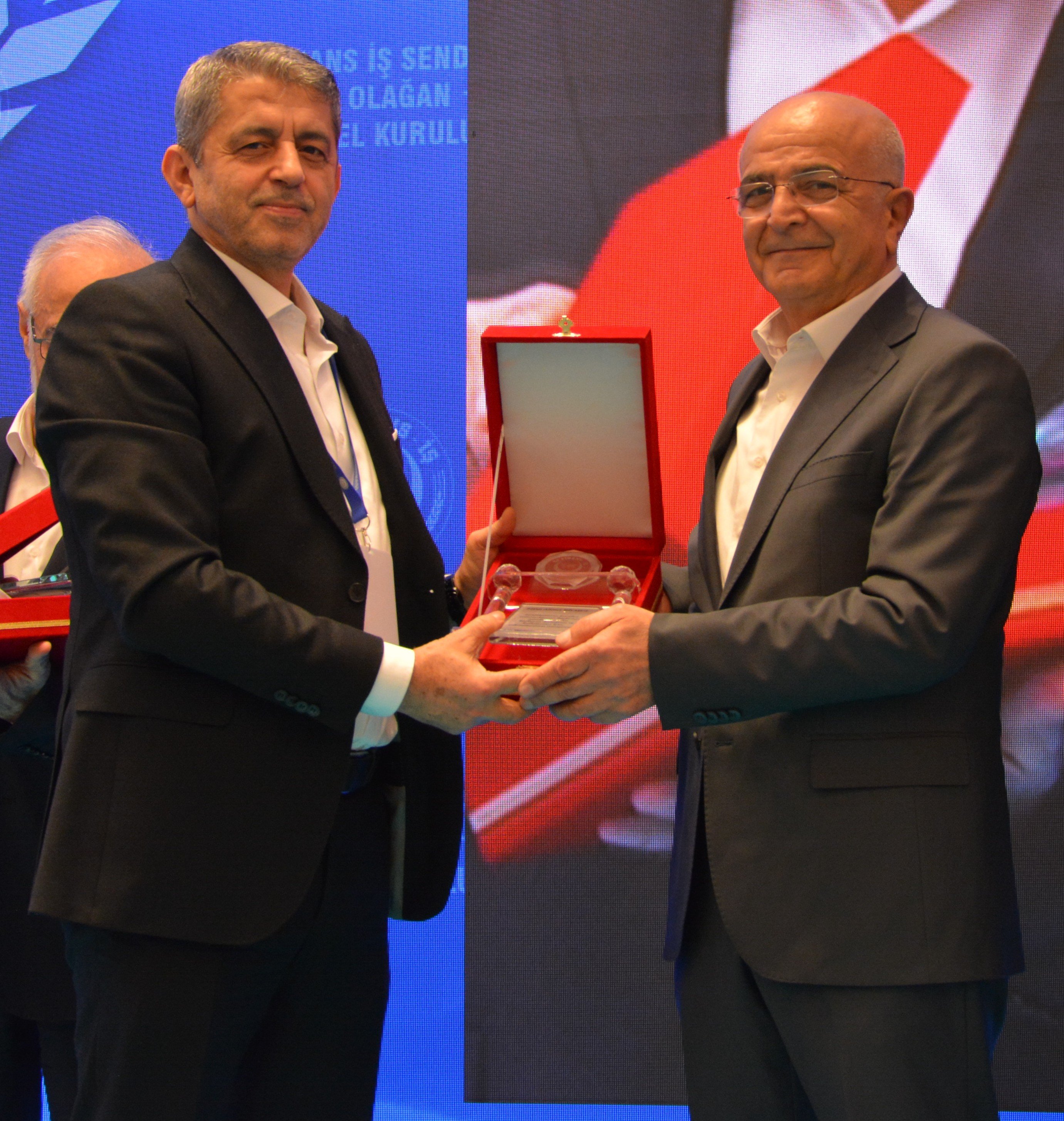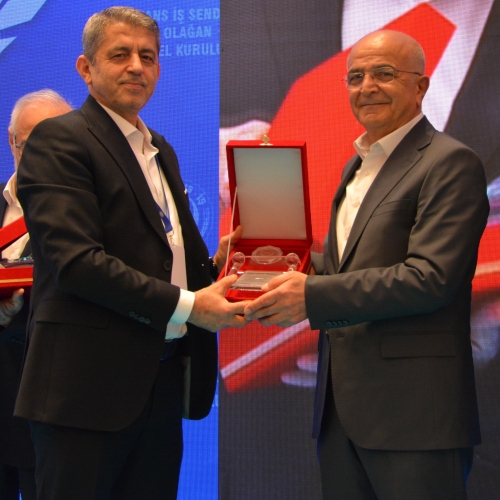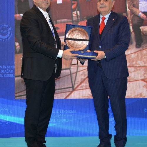 Genel Başkanımız Ahmet Eroğlu, kuruluşunda sendikamıza büyük katkı sunan Celal Asiltürk, Muhammet Polat ve Ahmet Bilmez'e teşekkür plaketi taktim etti. Celal Asiltürk adına plaketini oğlu Emir Asiltürk aldı.