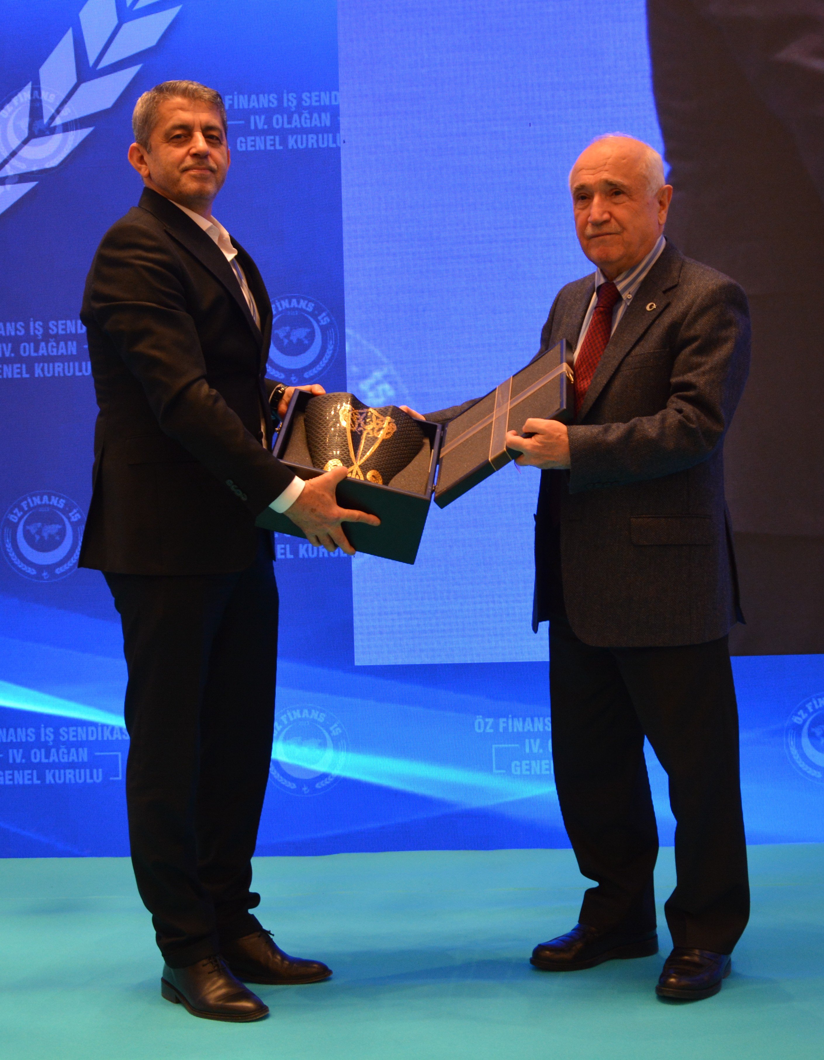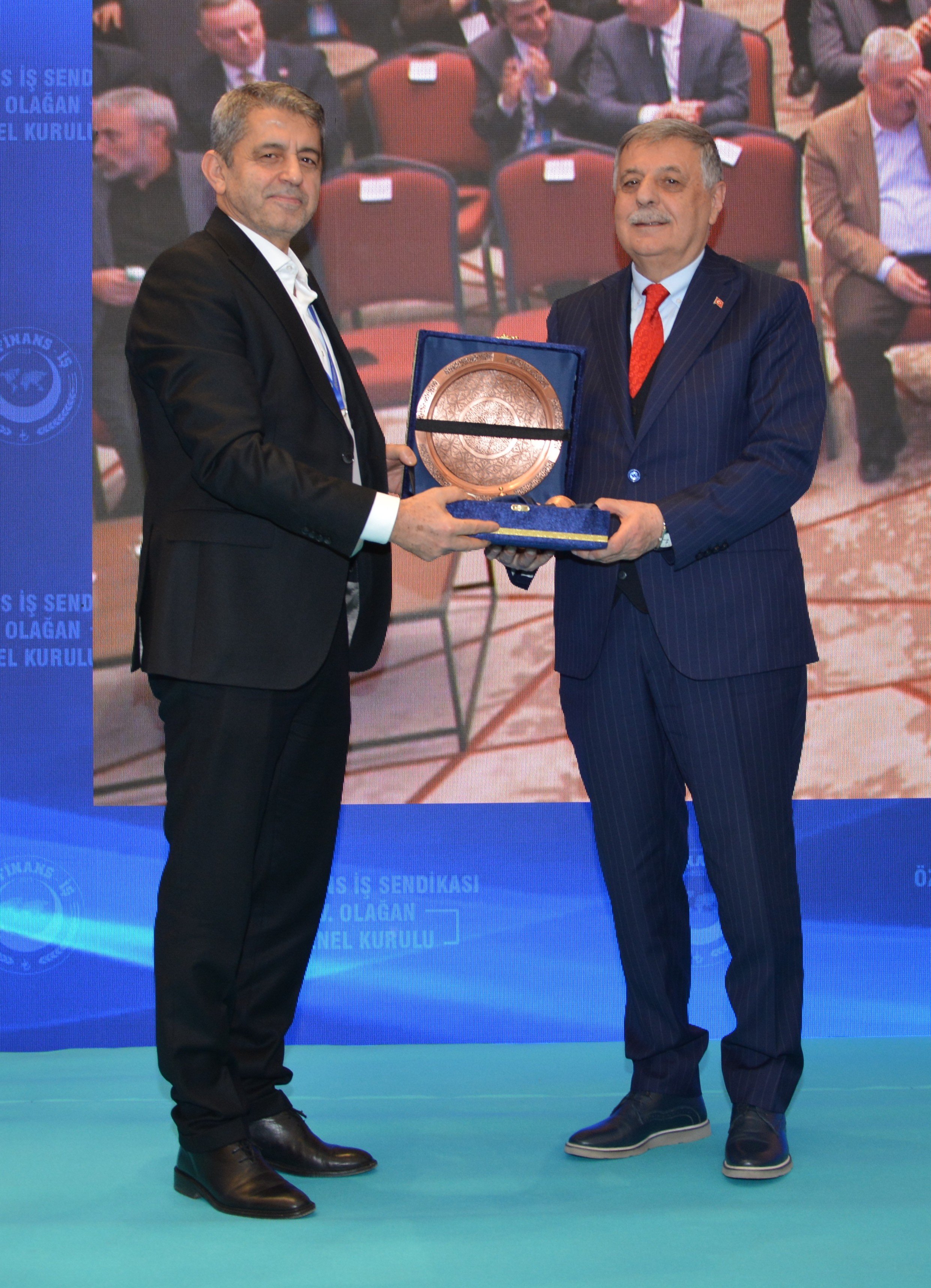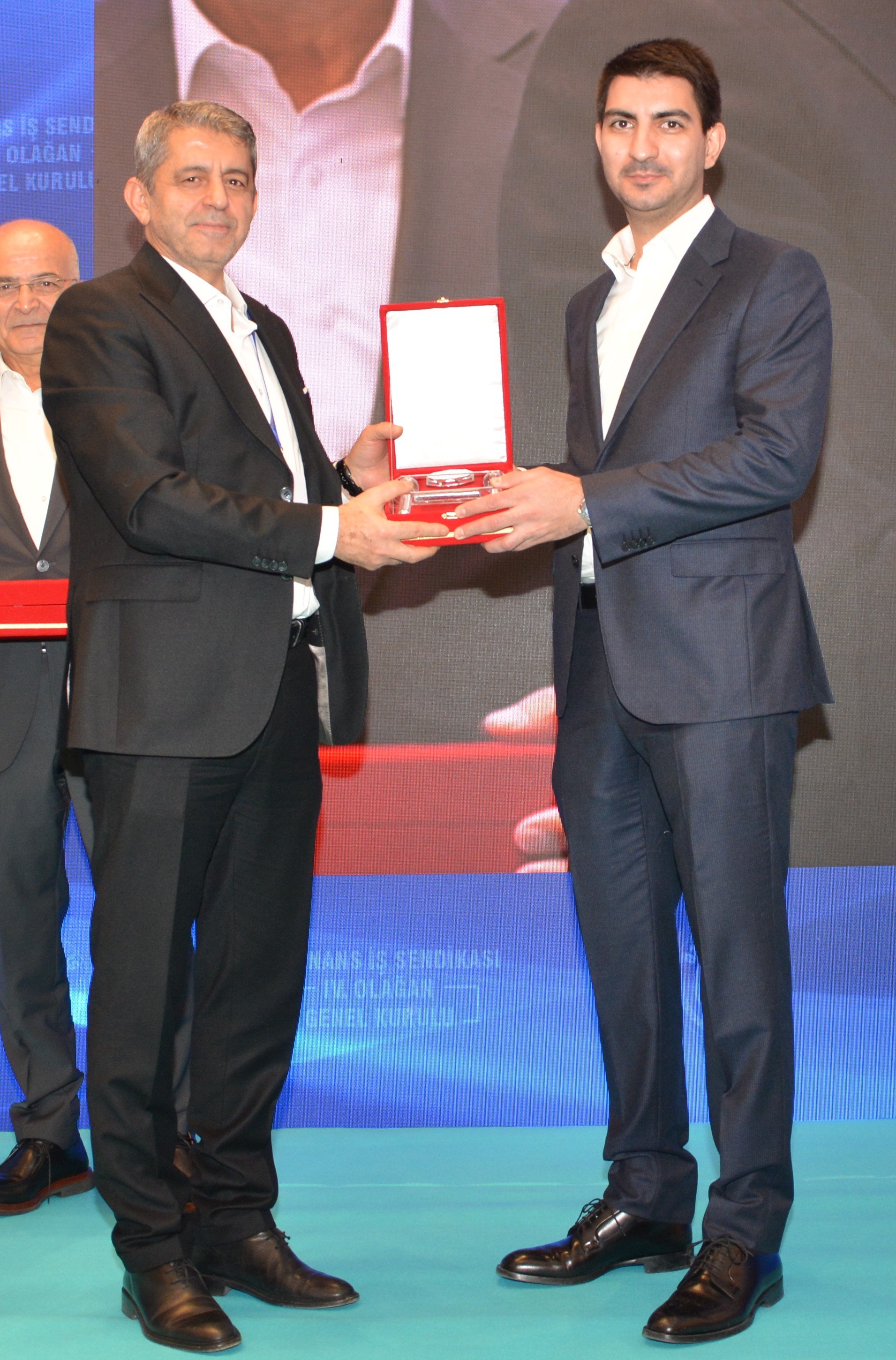Genel Başkanımız Ahmet Eroğlu, kuruluşunda sendikamıza büyük katkı sunan Celal Asiltürk, Muhammet Polat ve Ahmet Bilmez'e teşekkür plaketi taktim etti. Celal Asiltürk adına plaketini oğlu Emir Asiltürk aldı.